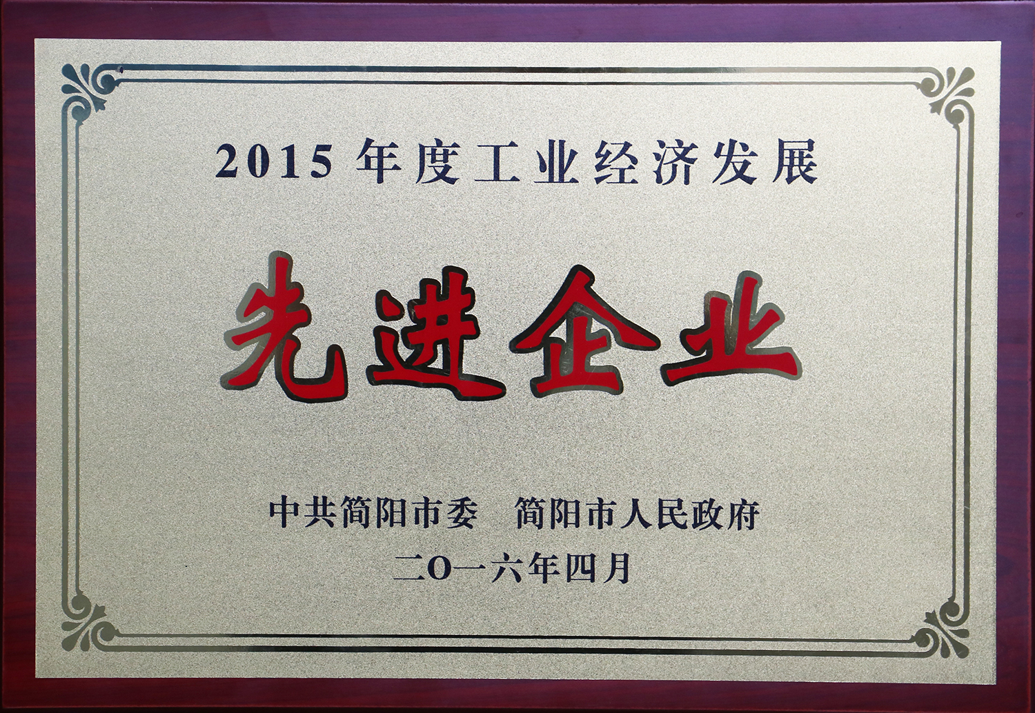 四川國光榮獲簡陽市2015年度工業(yè)經(jīng)濟發(fā)展先進(jìn)企業(yè)榮譽