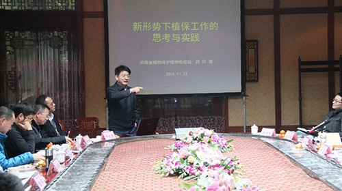 研討中,四川省植保站站長尹勇說:“我們一直有個目標(biāo)就是將好的產(chǎn)品用在巴山蜀水,單打獨(dú)斗已經(jīng)不適應(yīng)當(dāng)下形式的需要,政、科、企協(xié)同合作創(chuàng)新勢在必行,國家提出大眾創(chuàng)業(yè)萬眾創(chuàng)新的號召后,全國各省政府都相繼發(fā)布了支持創(chuàng)新的政策,四川省委省政府也以兩家的名義發(fā)布了支持科技創(chuàng)新和成果轉(zhuǎn)換的16條,支持四川的創(chuàng)新事業(yè)!焙幽鲜≈脖U菊鹃L呂印譜說:“三十年前我就知道國光,今天終于見到廬山真面目,以前只知道國光做三十烷醇等小產(chǎn)品,今天參觀了才知道國光的產(chǎn)品種類這么多,銷售額這么大,放眼全國的農(nóng)藥生產(chǎn)銷售企業(yè),專做植物生長調(diào)節(jié)劑的能做到如此規(guī)模的沒幾家。植保是政府部門的參謀,國光作為市場主體是農(nóng)業(yè)技術(shù)推廣很重要的渠道,他們有產(chǎn)品、有技術(shù)、直接與用戶接觸,加強(qiáng)合作,就是為農(nóng)民服務(wù),并且國光的專注令我敬佩,我也希望我們能加強(qiáng)合作,推廣好的技術(shù)和產(chǎn)品。”