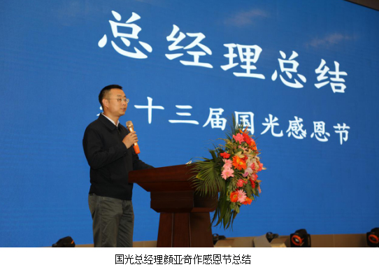 國光總經(jīng)理顏亞奇作了感恩節(jié)總結(jié),表示:“一個真正愛護(hù)員工的企業(yè),會對員工的健康、家庭、子女各方面進(jìn)行關(guān)心,此次我們擴(kuò)展感恩節(jié)的內(nèi)容及形式,邀請國學(xué)老師幫助員工建立良好的家風(fēng)家教;通過案例幫助員工教育好子女;進(jìn)行了職業(yè)健康、法制、防止上當(dāng)受騙等教育,都是公司對員工及員工家屬具體感恩行動的表現(xiàn),這些教育起到的作用遠(yuǎn)大于物質(zhì)和金錢。國光是一個大家庭,國光每一位員工都是大家庭中的一份子,只有每一位成員的小家過好,國光這個大家才會好,我希望全體國光人都能從本次感恩節(jié)教育中得到啟發(fā),從中受益,為自己的‘小家’也為共同的‘大家’活出更好的自己,貢獻(xiàn)更多的力量!