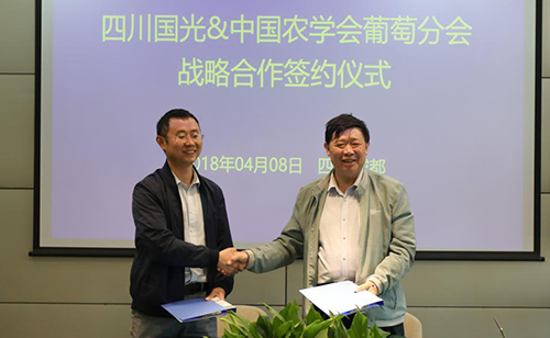2018年4月8日,中國農(nóng)學會葡萄分會會長劉俊、秘書長張鶴蒞臨國光,與國光總經(jīng)理顏亞奇就葡萄產(chǎn)業(yè)現(xiàn)狀與種植技術變革進行了交流,雙方在友好協(xié)商、互相促進的前提下簽署了戰(zhàn)略合作協(xié)議,國光有幸成為了中國農(nóng)學會葡萄分會第一家戰(zhàn)略合作單位。