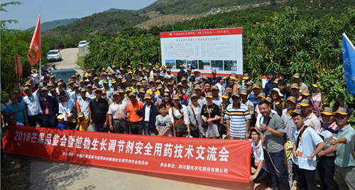 2018年3月30日—31日,由中國農(nóng)藥發(fā)展與應(yīng)用協(xié)會植物生長調(diào)節(jié)劑專業(yè)委員會主辦,國光承辦的2018芒果品鑒會暨植物生長調(diào)節(jié)劑(簡稱:植調(diào)劑)安全用藥技術(shù)交流會在三亞召開,海南省農(nóng)業(yè)科學(xué)院院長張治禮;中國熱帶農(nóng)業(yè)科學(xué)院副院長劉國道;全國農(nóng)業(yè)技術(shù)推廣服務(wù)中心農(nóng)藥與藥械處處長王鳳樂;中國農(nóng)藥發(fā)展與應(yīng)用協(xié)會秘書長花榮軍;廣西省農(nóng)科院白先進研究員;中國農(nóng)業(yè)大學(xué)農(nóng)學(xué)院教授、長江學(xué)者、植調(diào)劑專委會主任段留生等領(lǐng)導(dǎo)、專家出席。農(nóng)民日報、農(nóng)資導(dǎo)報全程跟蹤報道。