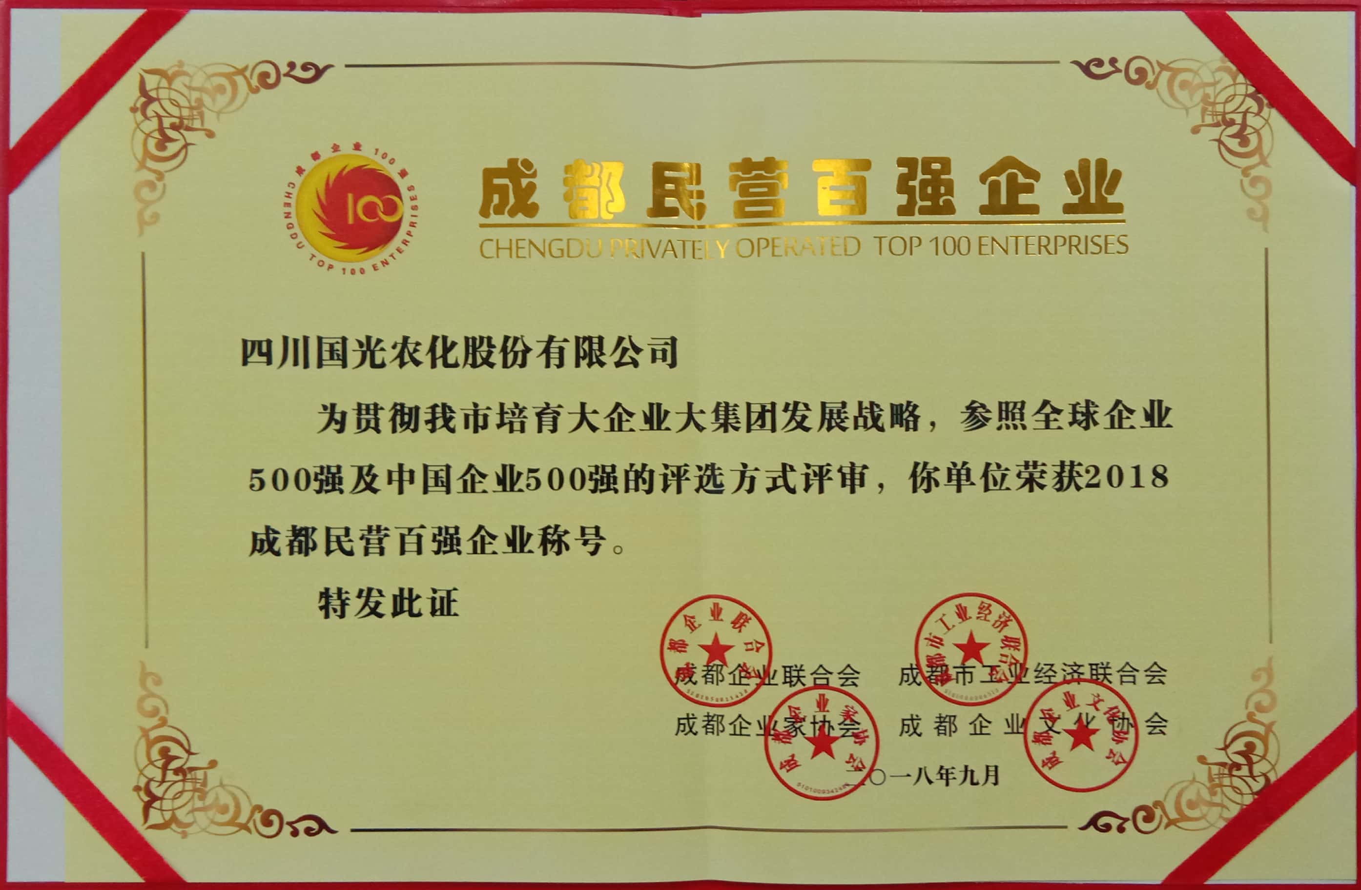 國光股份憑借優(yōu)異經(jīng)營業(yè)績和強(qiáng)勁增長勢頭,獲得“2018成都企業(yè)100強(qiáng)”榮譽(yù)稱號(hào)。