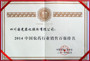 國(guó)光上榜“2014中國(guó)農(nóng)藥行業(yè)銷售百?gòu)?qiáng)排名”