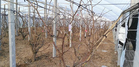 扣棚時間一般在2月中下旬。過早,萌芽固然早,地溫提升過慢,根系不活動,造成萌芽不整齊,若遇低溫倒春寒,易造成凍害,影響生長。過晚,一方面失去扣棚的意義;另一方面,此時外界氣溫較高,極易造成棚內(nèi)溫度居高不下,降溫困難,很容易導(dǎo)致營養(yǎng)生長過旺,花蕾分化不健壯,直接影響開花坐果。